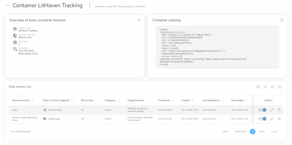 Already by the start of 2025, we revealed CareCloud’s new Customer Engagement app. This app enables brands to collect customer behavioral data directly from their websites’ frontends, such as page visits, clicks, browsing activity, and form interactions.