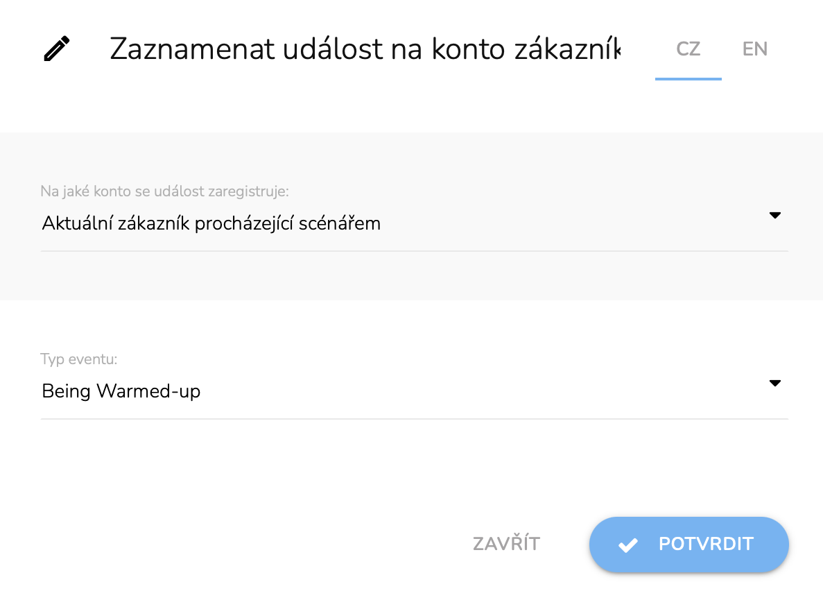 Abychom zajistili, že každý zákazník bude kontaktován pouze jednou během 6 měsíců, přidáme do scénáře uzel události. Když zákazník projde scénářem, tato událost se zaznamená v jeho profilu, takže při příštím spuštění scénáře (jednou za měsíc) tito zákazníci neprojdou počáteční podmínkou. To pomáhá udržovat vyváženou a uctivou komunikaci se zákazníkem.